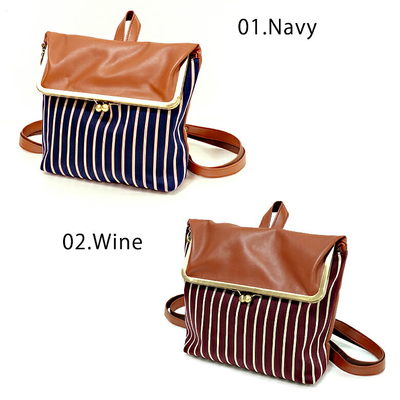 口上部が2つ折りになっているがま口タイプのリュック。