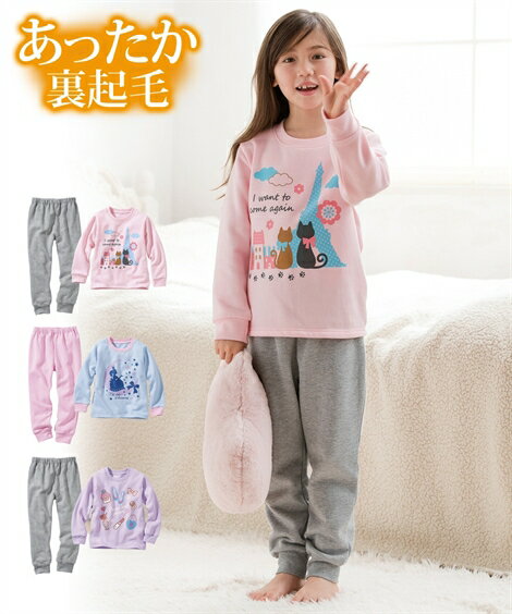 パジャマ キッズ 女の子 裏起毛 プリント 子供服 ジュニア服 サックス+ピンク/ライトピンク+杢グレー/ラベンダー+杢グレー 身長110〜160cm ニッセン