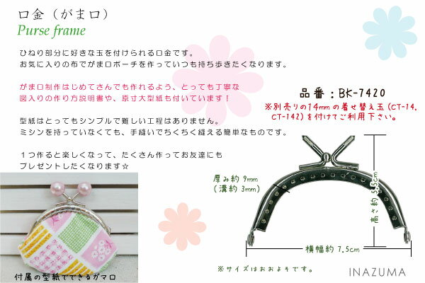 がま口ポーチ制作用玉取り外し口金。(BK-7420)