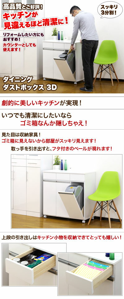 ■ダイニングダストボックス3D/高品質/3分別/ゴミ箱/ホワイト/ブラウン/台所用ごみ箱/キッチンカウンターワゴン/清潔感/高級感/綺麗/キレイ/きれい/シンプルデザイン/リビング/木製/薄型/北欧/送料無料/送料込み//白/鏡面仕上げ/茶/ダークブラウン/キッチンストッカーワゴン/キッチンワゴンカウンター/塵箱/Dustbox/楽天/通販/大容量/収納家具/ボックス/棚/キャビネット/引き出し/引出し/キャスター付き/屑籠/屑カゴ/屑かご/クズ籠/クズカゴ/クズかご/くず籠/くずカゴ/くずかご/屑入れ/クズ入れ/くず入れ/生ゴミ/生ごみ/生塵/野菜ストッカー/野菜ラック/ボトルストッカー/ボトルラック/明るい/色/カラー/一人暮らし/1人暮らし/ひとり暮らし/独り暮らし/二人暮らし/2人暮らし/ふたり暮らし/一軒家/マンション/アパート/LDK/ワンルーム/ダイニングキッチン/リビング/新築/引越し/引っ越し/リフォーム当店では ニトリ IKEA イケア 製品は取り扱いがありません。